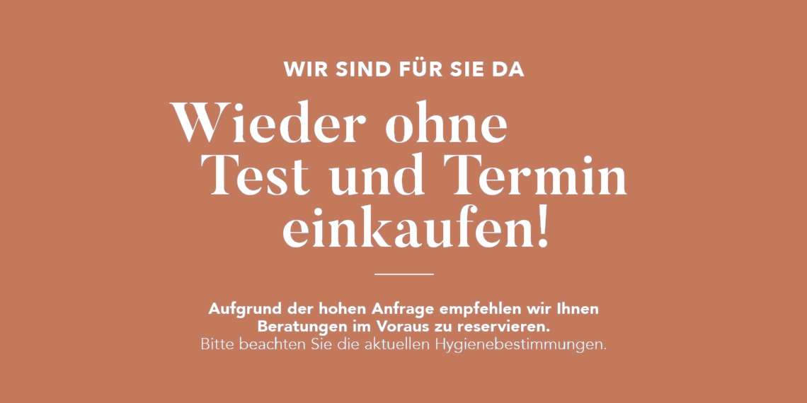 Ab Freitag, 04. Juni 2021, können Sie uns, unter den bekannten Abstandsregeln und Einhaltung der Maskenpflicht, wieder ganz regulär besuchen - es ist kein Termin oder Test dafür nötig. Wir freuen uns auf Sie!